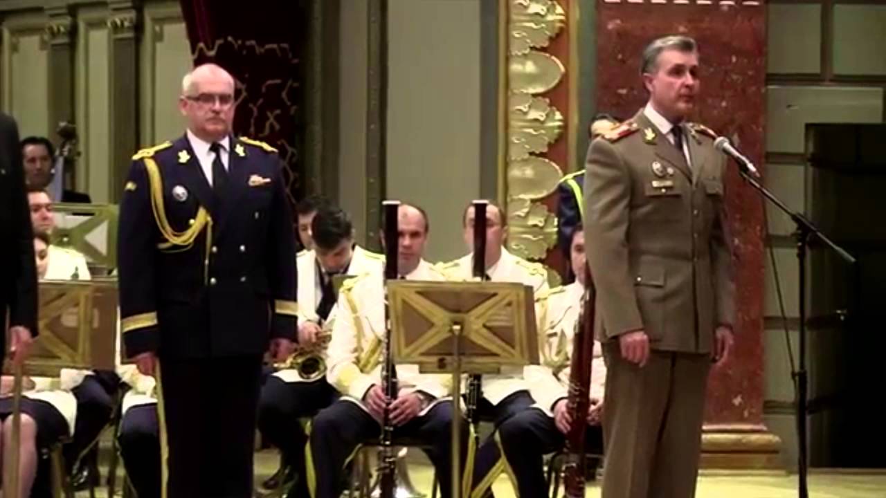 Intonarea Imnului Regal și discursul Principelui Radu la spectacolul de încheiere a Concursului Național de Creație pentru Muzica de Fanfară "Iosif Ivanovici", ediția a XI-a, 12 aprilie 2016